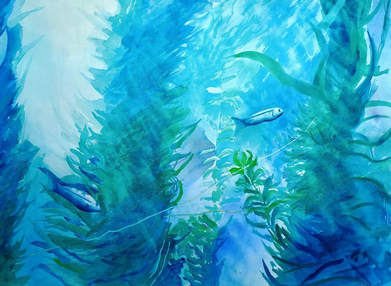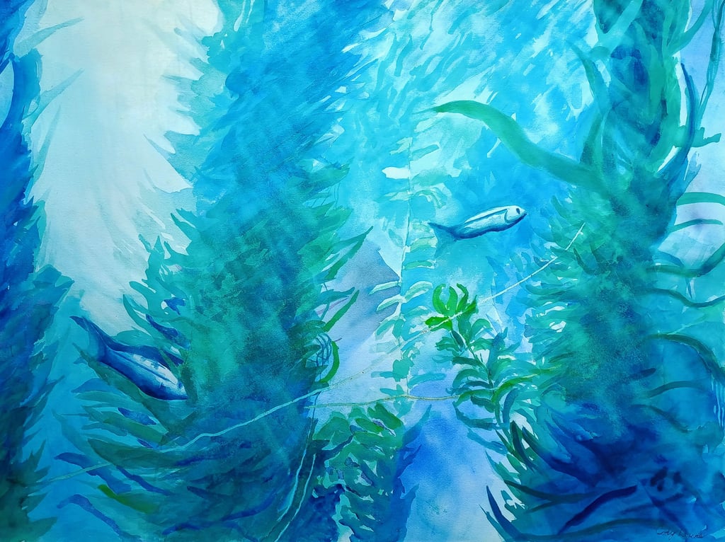Kelp Beds California $100 32 in X 20 in Watercolor Unframed Clearance