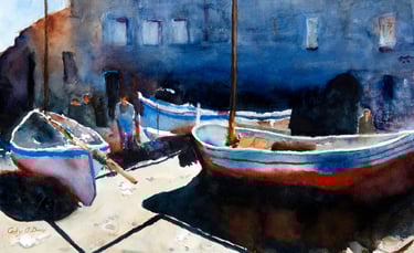 Spanish Boats $250 22 in X 15 in Watercolor Unframed