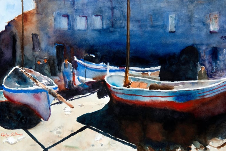European Fishing Boats $250 30 in X 22 in Watercolor Unframed