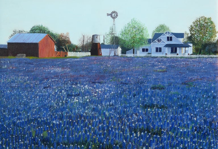 Hill Country Bluebonnets $150 30 in X 22 in Watercolor Unframed Clearance