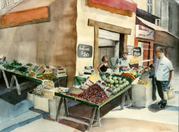 Flower Market Lyons France $235 32 in X 20 in Watercolor Unframed