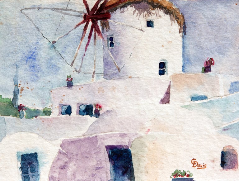 Santorini $200 15 in X 11 in Watercolor Unframed Sold
