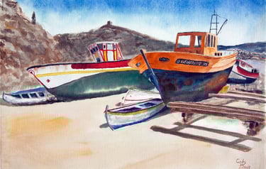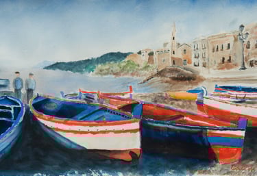 Spanish Boats $250 22 in X 15 in Watercolor Unframed