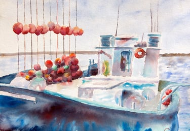 Gulf Fishing Boat $135 15 in X 11 in Watercolor Unframed Clearance
