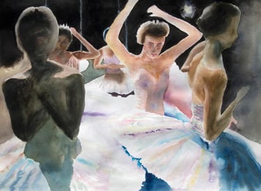 Ballet Dancers $250 30 in X 22 Watercolor Unframed Clearance