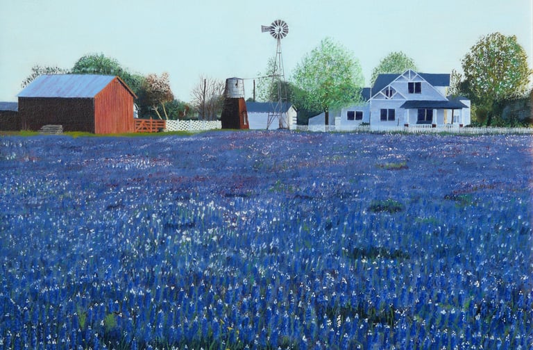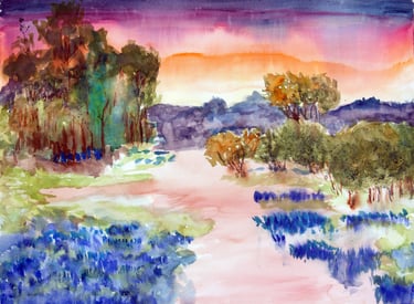 Hill Country Bluebonnets $150 30 in X 22 in Watercolor Unframed Clearance