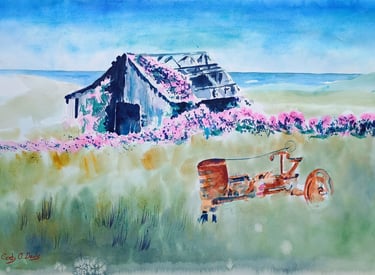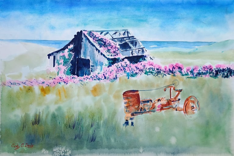 Barn and Tractor $80 20 in X 15 in Watercolor Unframed Clearance