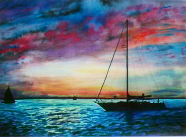 Sunset over Clear Lake $450 30 in X 22 in Watercolor Unframed Sold