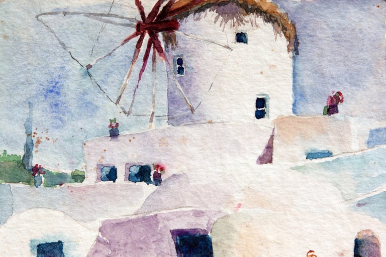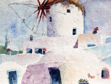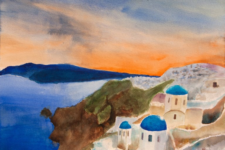 Santorini $200 15 in X 11 in Watercolor Unframed Sold