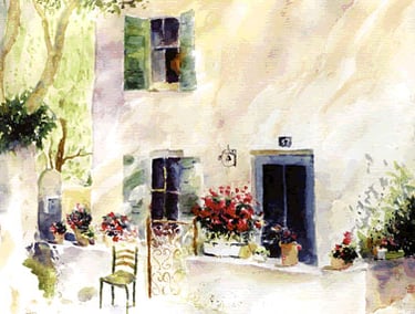 French Farmhouse $400 32 in X 20 in Watercolor Sold