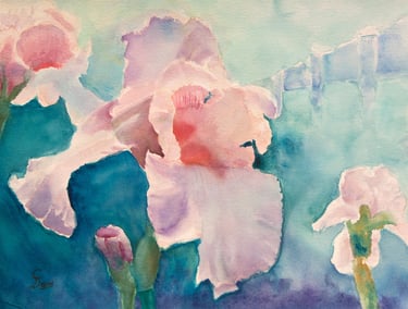 Pink Iris $200 15 in X 11 in Watercolor Unframed
