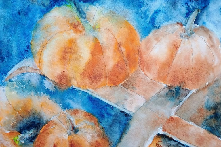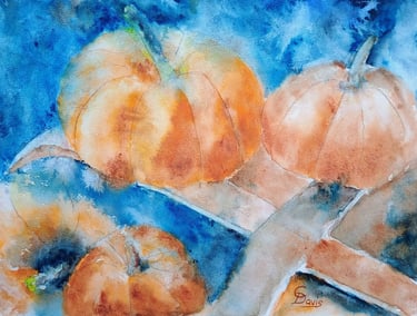 Pumpkins $50 15 in X 11 in Watercolor Unframed Clearance