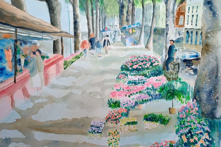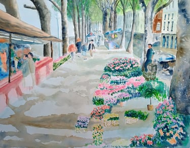 Flower Market Lyons France $235 32 in X 20 in Watercolor Unframed