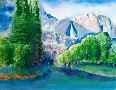 Yosemite Falls $100 32 in X 20 in Watercolor Unframed Clearance