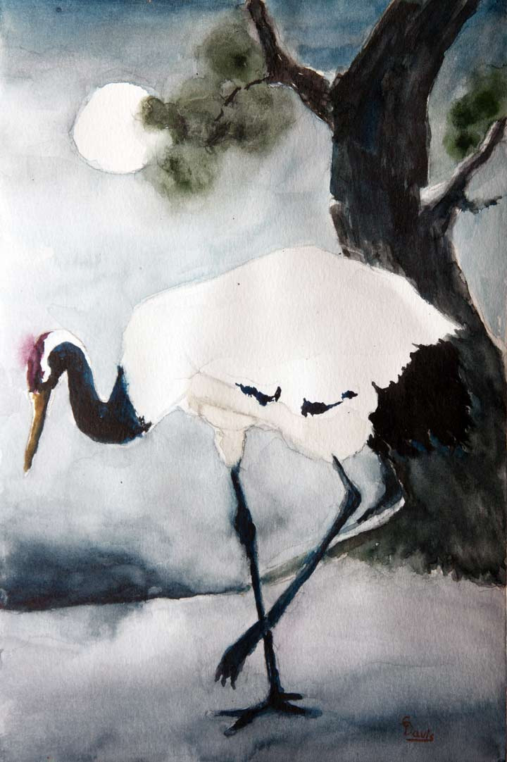 Japanese Crane $80 6 in X 8 in Watercolor Unframed