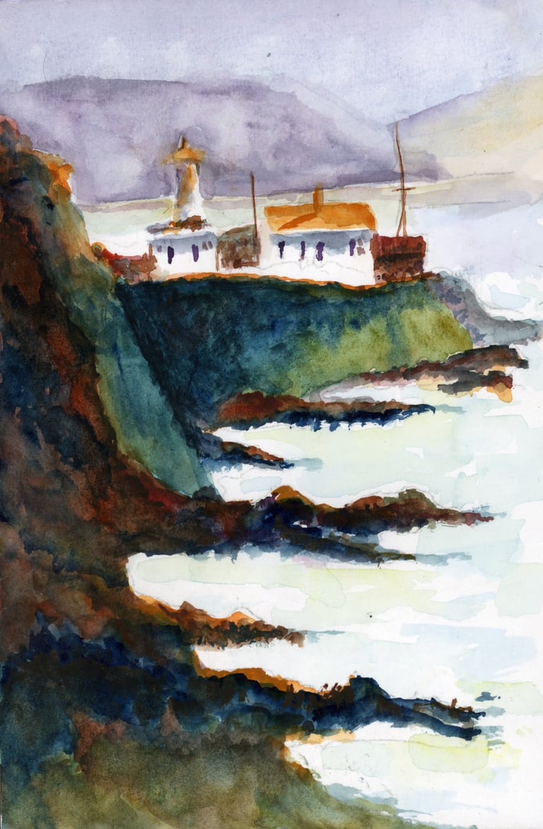 Lighthouse on Coast $80 6 X 8 in Watercolor Unframed