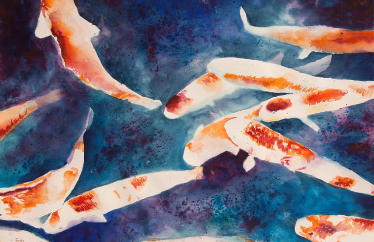 Don't Be Koi $80 30 in X 22 in Watercolor Unframed Clearance