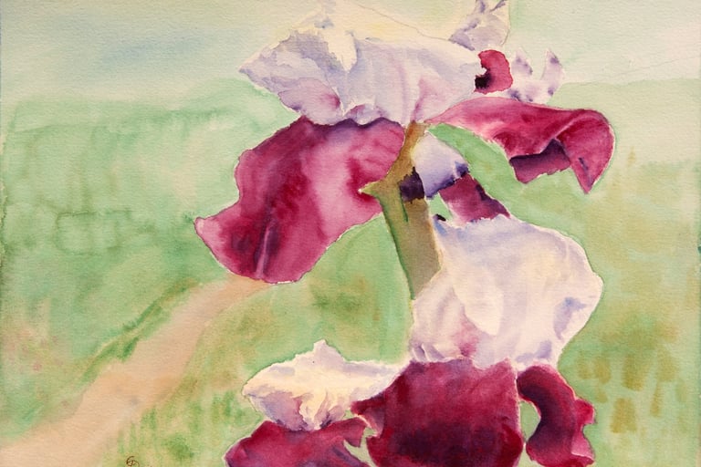 Red and White Iris $200 15 in X 11 in Watercolor Unframed