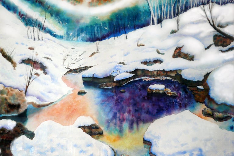 Utah Snowscene $450 32 in X 20 in Watercolor Sold