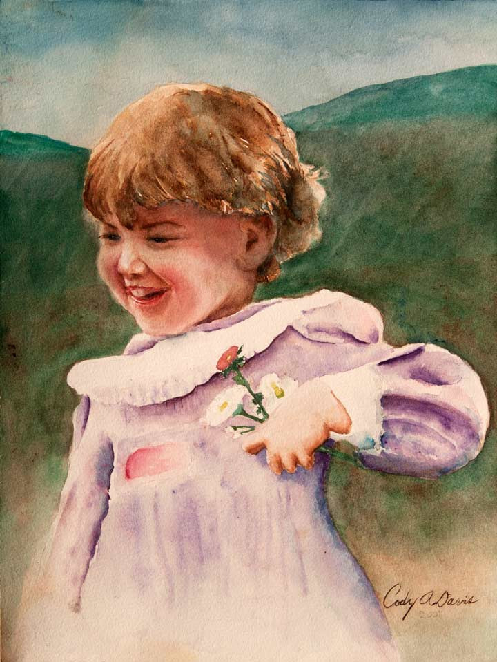 Girl with Flowers $250 30 in X 22 in Watercolor Unframed